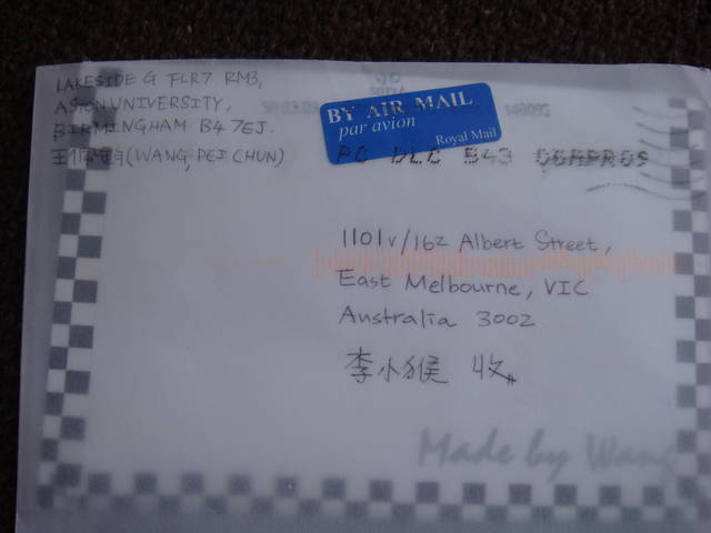 看到裡面有張卡片 是從英國搭飛機來的唷