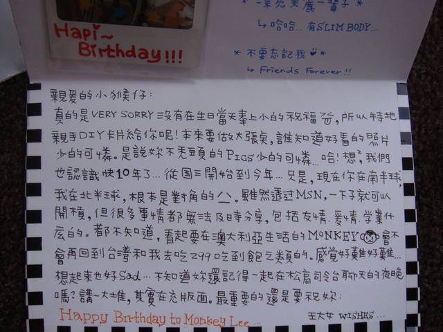 我的大愛人 王大女寄來了一張她親手做的卡片耶 超開心的啦