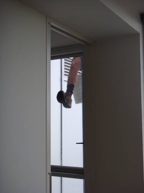 往窗戶一看 居然有個"下半身"出現在窗戶外面