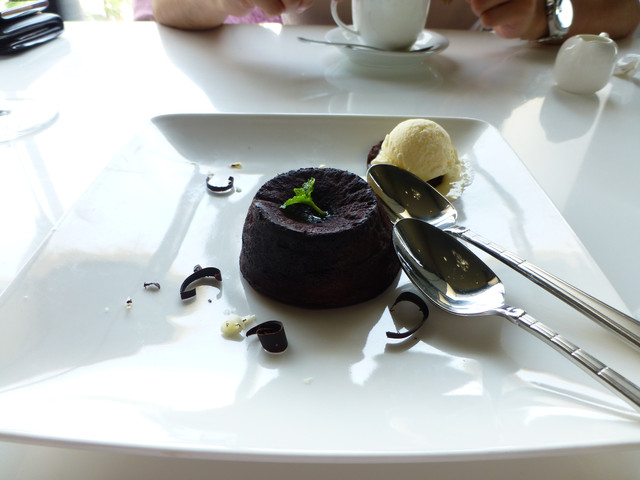 蛋糕的外皮烤的有點焦焦脆脆的 旁邊還有附上一球很好吃的香草冰淇淋