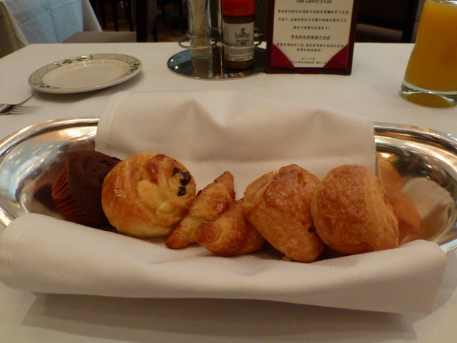 超好吃的餐前麵包 裡面總共有五種不同的麵包 像是巧克力馬芬 牛角麵包 藍莓派