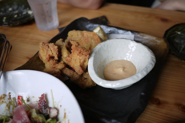 雞肉本身已經有先醃過了 所以光是單吃不用沾醬就很夠味了